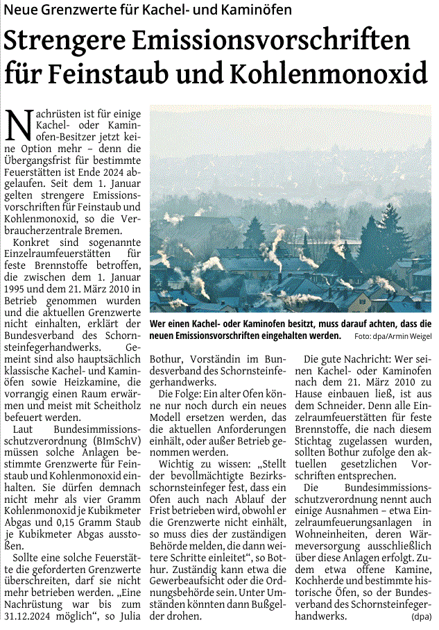 Ab 1. Januar 2025 gelten strengere Vorschriften für Feinstaub und Kohlenmonoxid